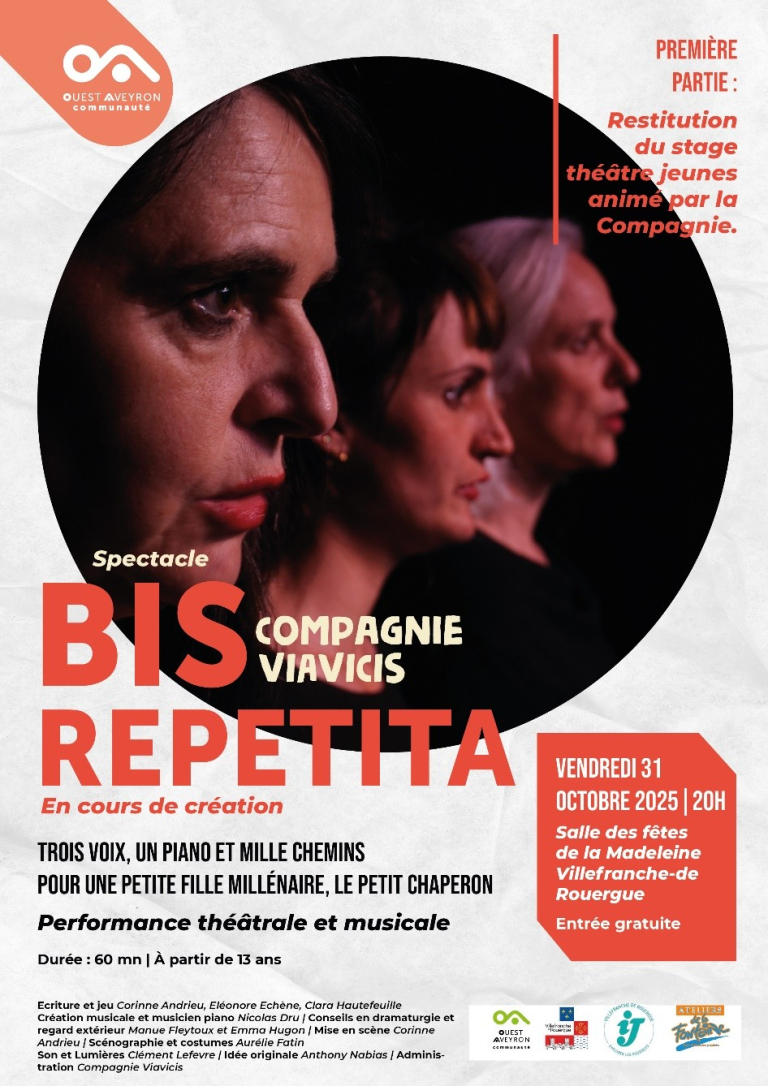 Ouest Aveyron Communauté a le plaisir de vous inviter au spectacle « BIS REPETITA » (en cours de création) de la compagnie professionnelle Viavicis le vendredi 31 octobre à 20h à la Salle de la Madeleine à Villefranche-de-Rouergue. Trois voix, un piano et milles chemins pour une petite fille millénaire, le Petit Chaperon Rouge « […]