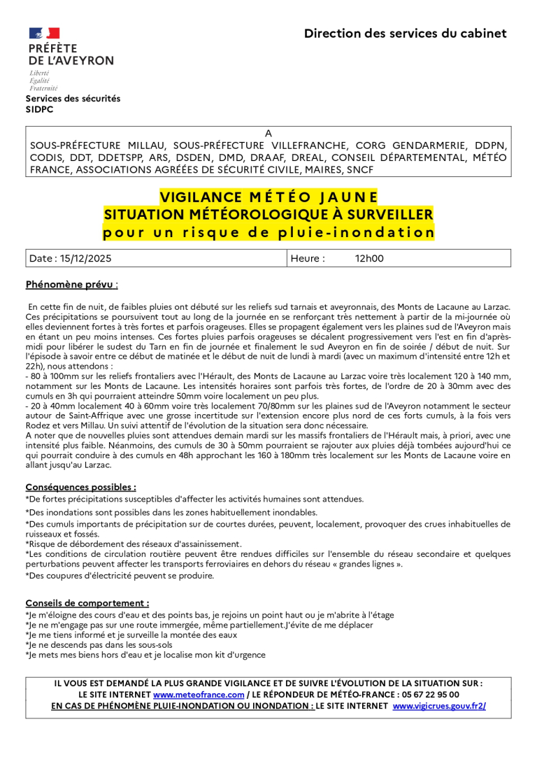 Passage de l’Aveyron en vigilance orange pour le risque « neige-verglas » à compter de ce samedi à minuit. Une perturbation aborde l’est de la région ex-Midi-Pyrénées. Associée à un apport d’air froid, une baisse de la limite pluie-neige est attendue, occasionnant de la neige en moyenne montagne.