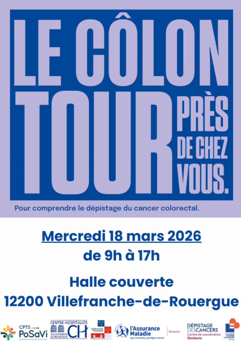 Le Côlon Tour 2026 se déroulera ce mercredi 18 mars, de 9h à 17hà la Halle Couverte (5 rue Notre-Dame) à Villefranche-de-Rouergue.