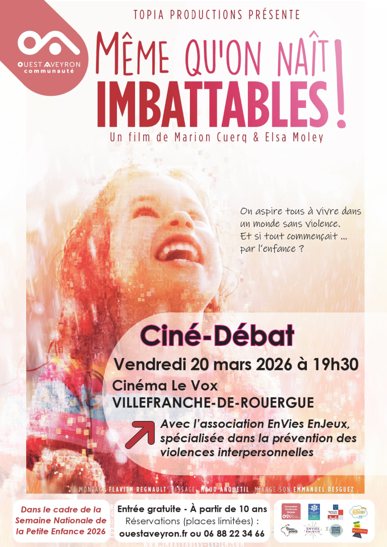 Dans le cadre de la Semaine Nationale de la Petite Enfance, Ouest Aveyron Communauté, via son service Familles, vous invite à un ciné-débat autour du documentaire « Même qu’on naît imbattables ».