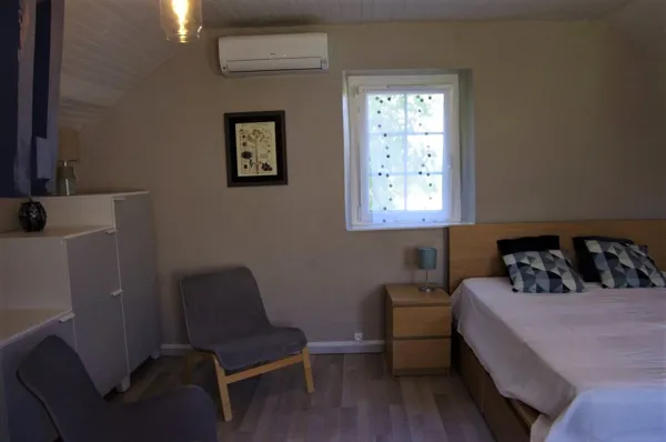Rez de chaussée : Une grande pièce avec salon /salle à manger, TV, Internet, cuisine équipée. Salle de bain. Lave- linge.