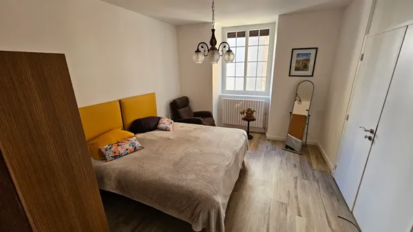 Vous disposerez d’un espace intérieur de 100 m2 entièrement rénové en 2024. Dans la grande pièce de la cheminée médiévale et face au jardin, se situe le séjour salon cuisine.