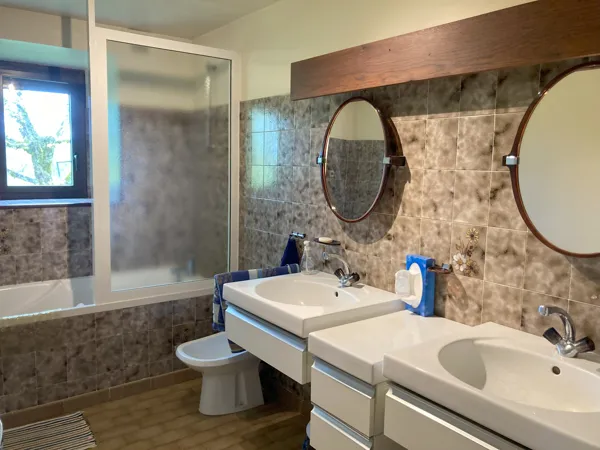 La maison comprend une véranda, un salon, une cuisine équipée, une salle à manger, deux chambres, une salle de bains, une petite salle d’eau, deux WC et une buanderie.