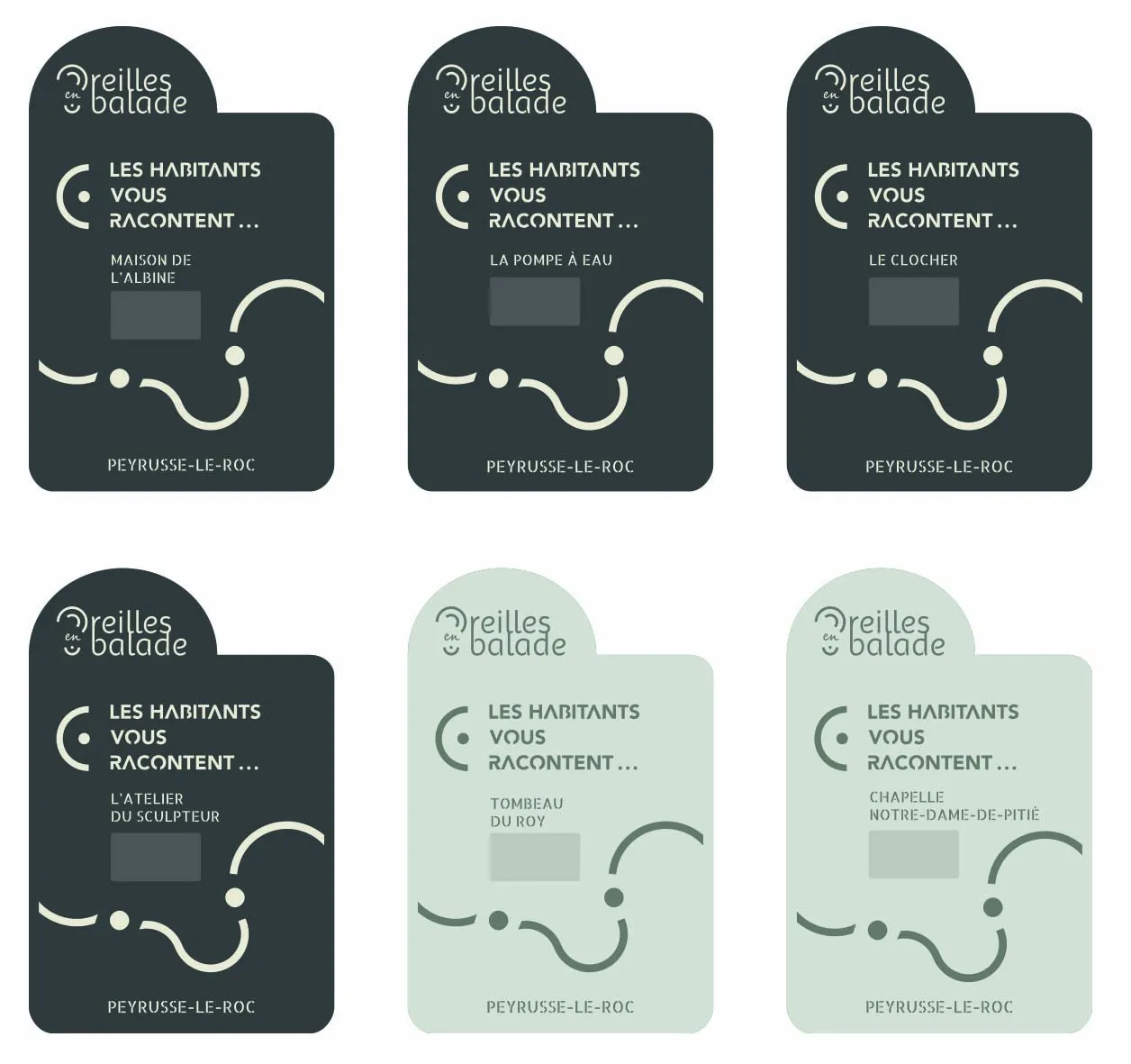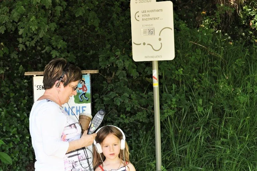 Des QR codes sont présents sur la signalétique, flashez les avec votre téléphone mobile et vous accéderez directement aux documents sonores.