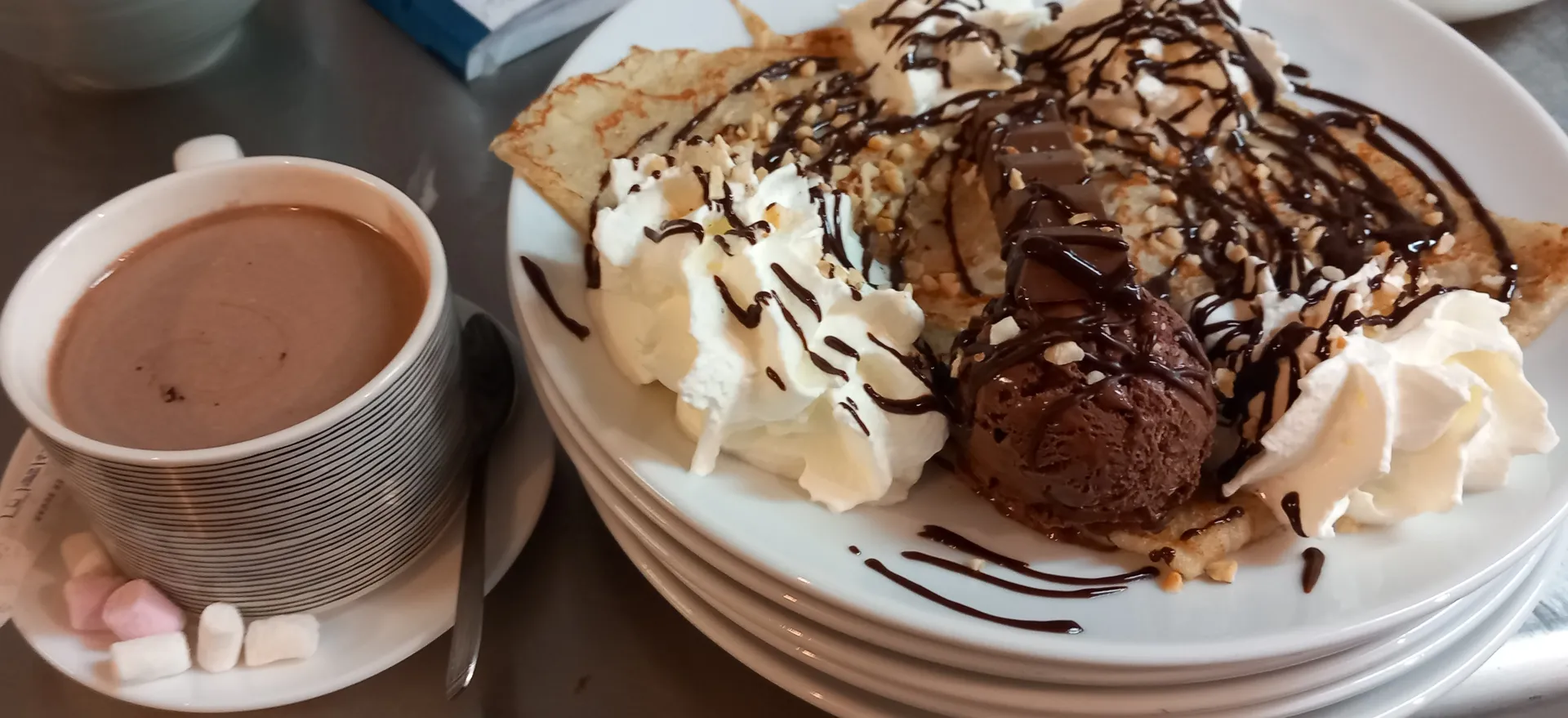 En dessert, crêpes, glaces, desserts du jour, smoothies.