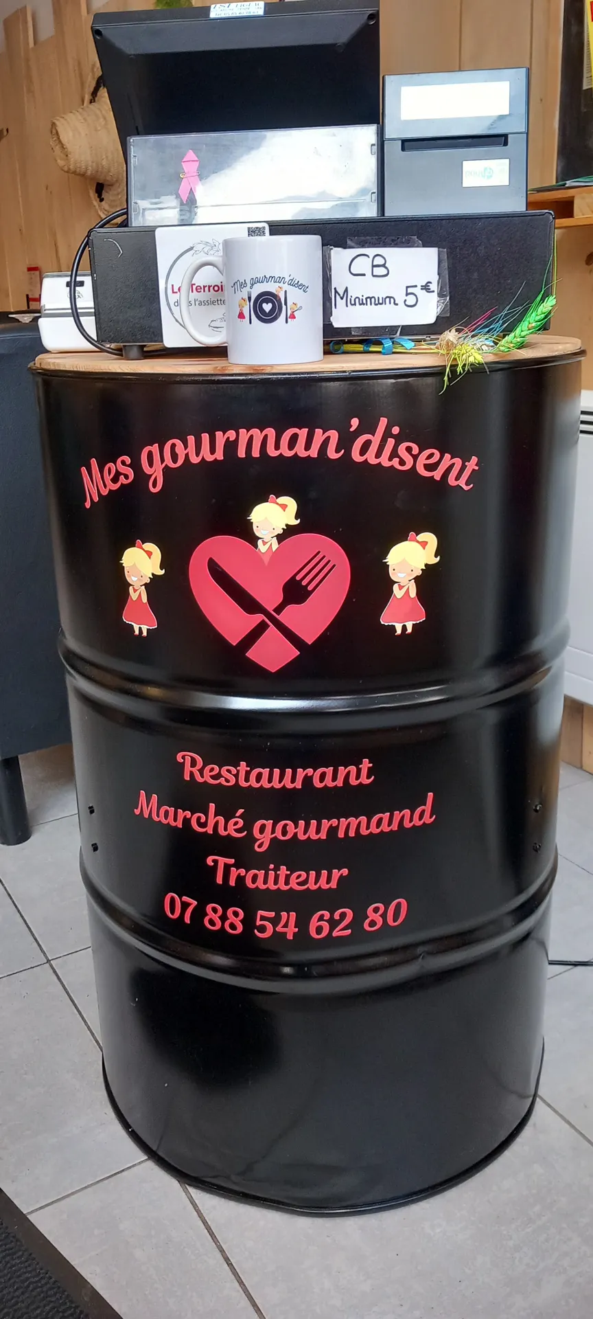 « Mes gourman’disent » propose des plats frais fait maison en circuit court. Salades, assiette gourmande, bavette, burgers frites, galettes (menu enfant proposé) glaces, crêpes, smoothies. Sur place ou à emporter. Bière Vin local. Ambiance familiale.