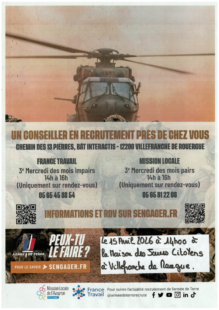 Une journée de recrutement de l’Armée de Terre est organisée à la Maison des Jeunes Citoyens, place de la liberté à Villefranche de Rouergue
