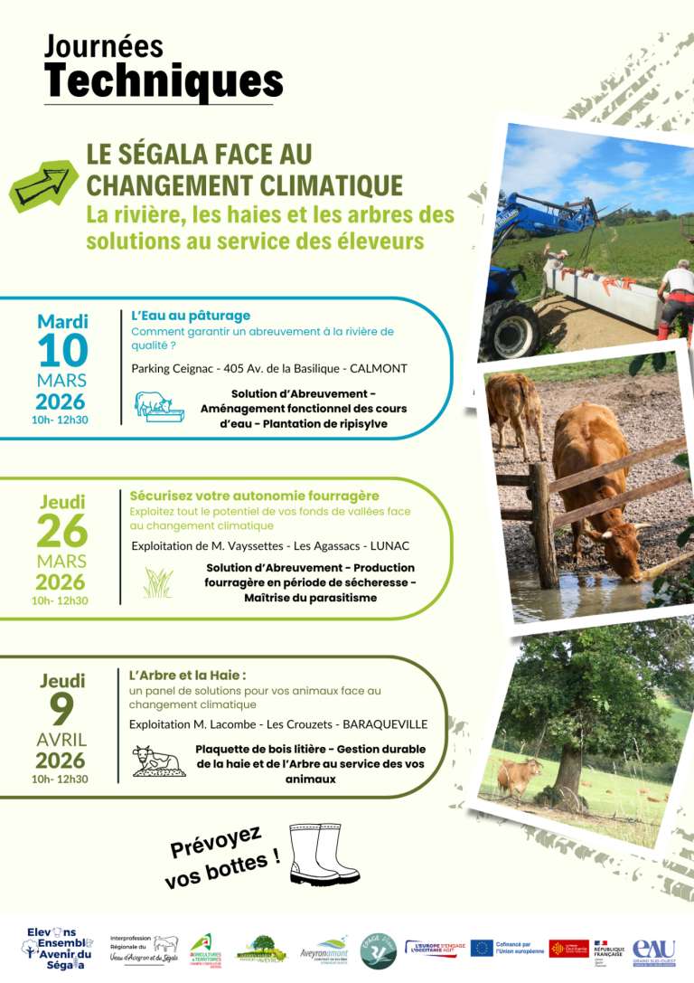 Dans le cadre du projet « Élevons ensemble l’avenir du Ségala », l’Interprofession Régionale du Veau d’Aveyron et du Ségala organise 3 journées techniques gratuites pour tous les agriculteurs du Ségala. Objectif : des solutions concrètes face au changement climatique.